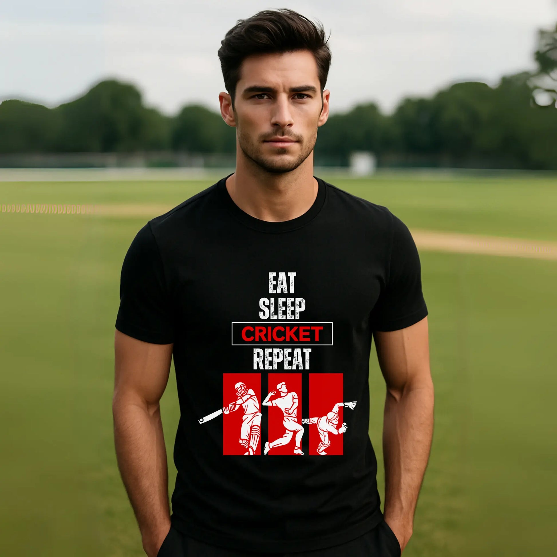 Eat Sleep Cricket Repeat T-Shirt β Men's Cricket Graphic Tee